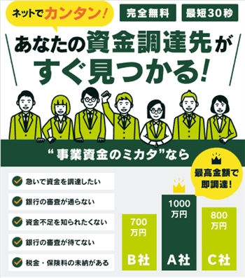 事業資金のミカタでは、無料でファクタリング業者を一括見積もりすることができます。